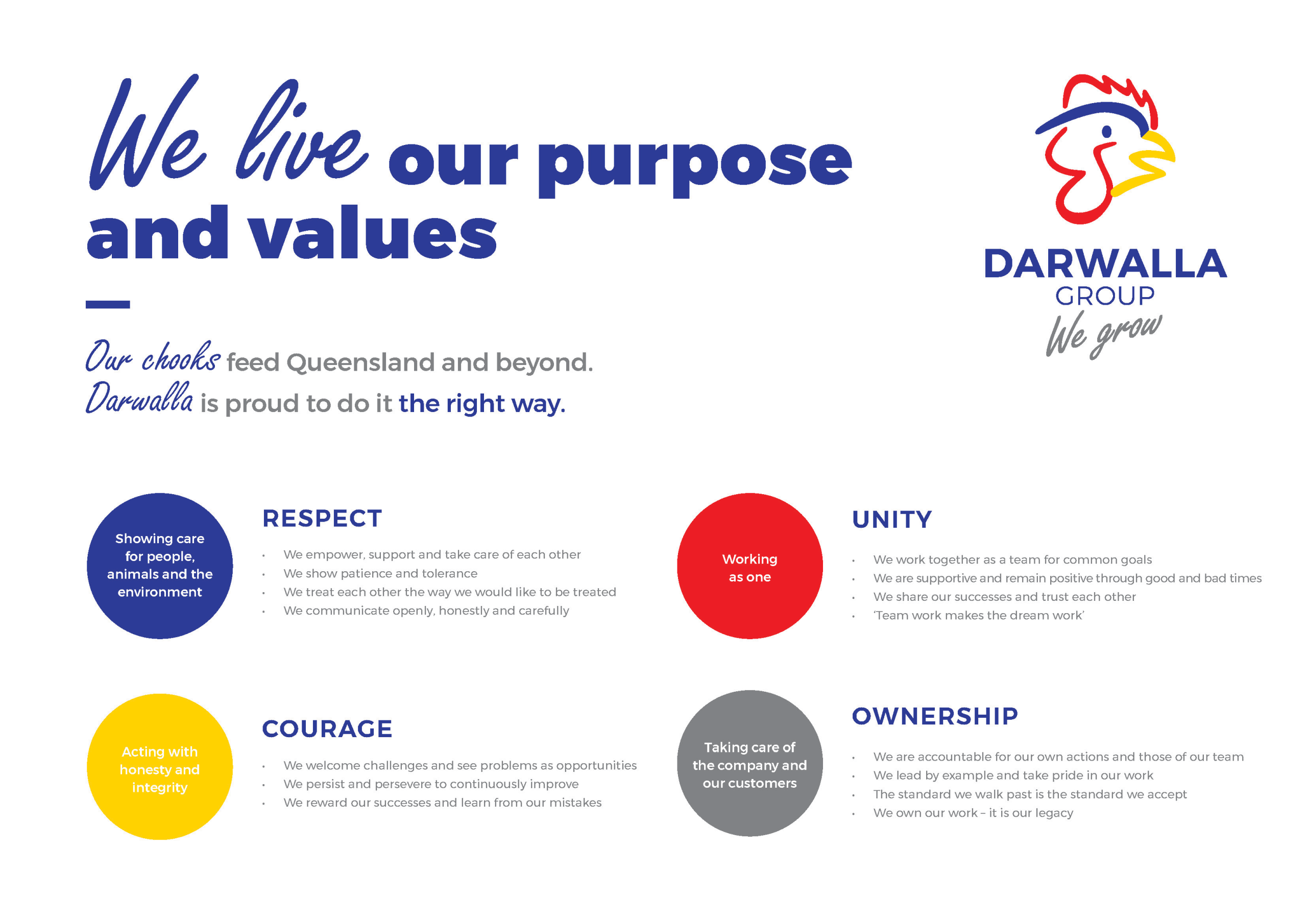 “Darwalla places great importance on its company values, so much so that all staff were given the opportunity to be part of focus groups to develop the values, to ensure that they truly reflect the people within the organisation”.